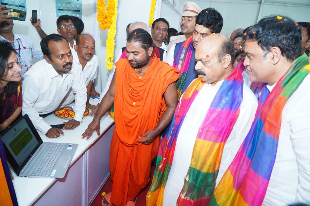 Chief Minister Basavaraja Bommai, Sri Vachanananda Swamiji, MP Siddesh, MP Devendrappa, and Minister Shankar Patil Munenakoppa were present.