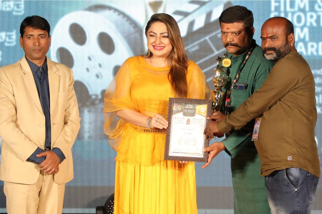 Actor Mahendra Manoth bagged “Special Dedication Award” for his acting and the award was given away at a scintillating three-day Karnataka International Film Festival – 2022 held at the Gandharva Kala Mandir at Hubballi. The award was given away by Kannada film actress Priyanka Upendra and another actress Bhavya.