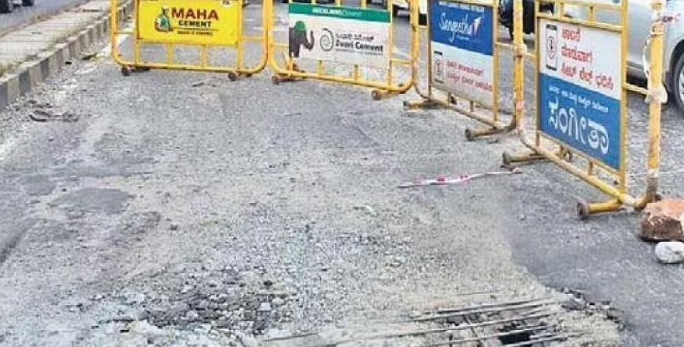 Bengaluru, Sept. 23: A gaping hole that surfaced on Sumanahalli flyover locat