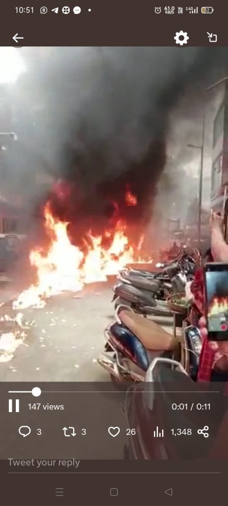 When the camphor was lit the wind aggravated the fire and the bikes caught fire, leading to a tense situation.