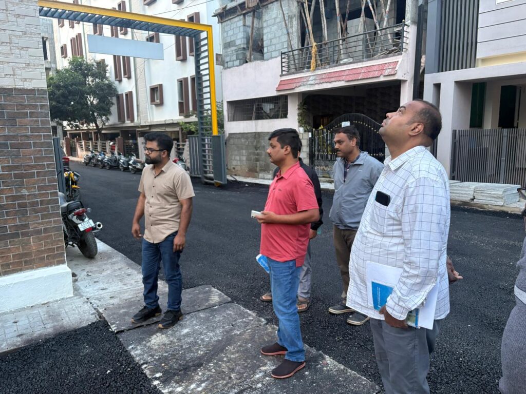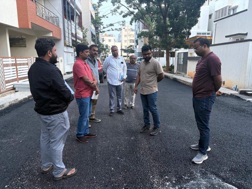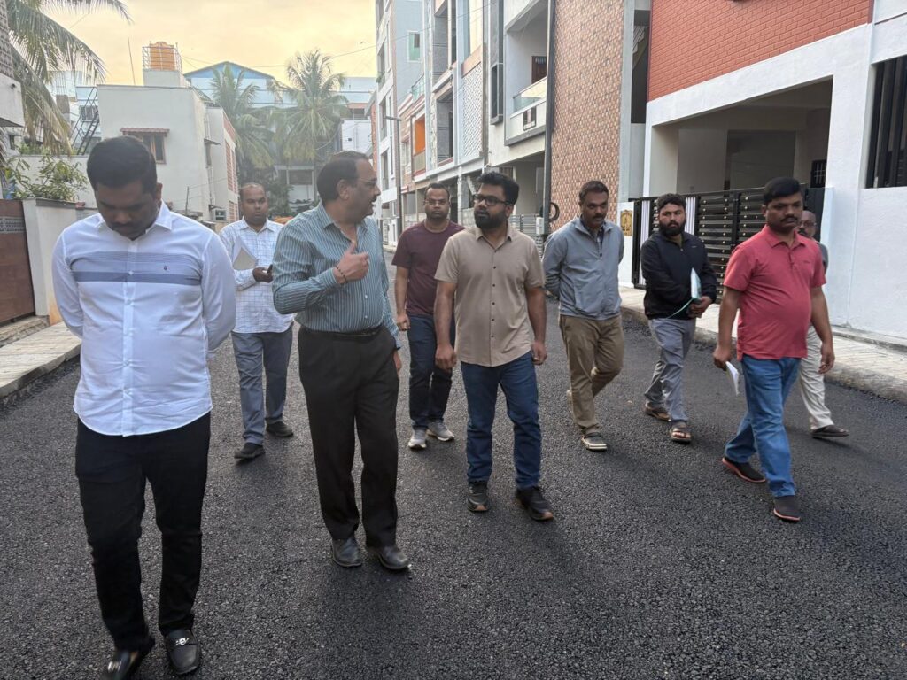 During the inspection, the Commissioner instructed the engineers present to verify that proper camber has been provided during road construction. He also directed them to coordinate with BWSSB officials to raise manholes to road level.