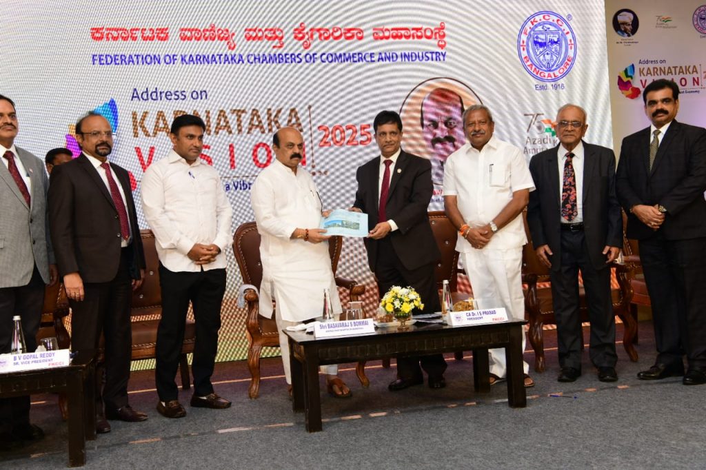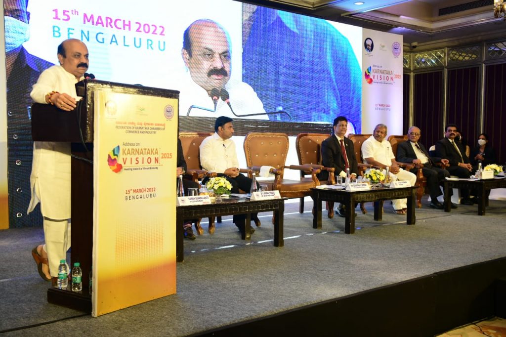 The Chief Minister in his address at the ‘Vision of Karnataka 2025’ conclave organised by Federation of Karnataka Chambers of Commerce and Industry (FKCCI) said, by 2025 the economy would have attained pace and buoyancy. I am confident of Karnataka making a significant contribution of $1.5 Trillion to realise Prime Minister Modi’s dream of making India a $5 Trillion economy. The GDP growth would double. With financial discipline and planning there would be growth in the Agriculture, Industry and Services sectors, Bommai said.