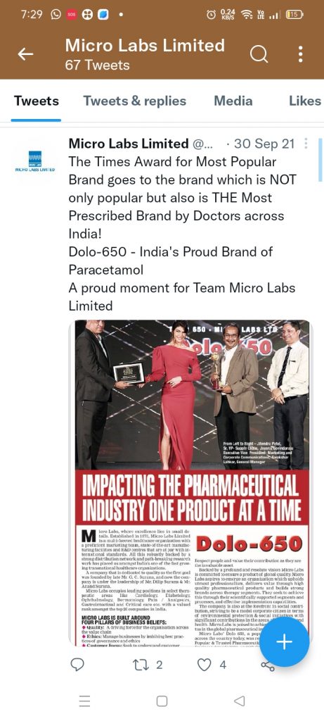 Dolo 650 is manufactured by this Bengaluru based Micro labs.