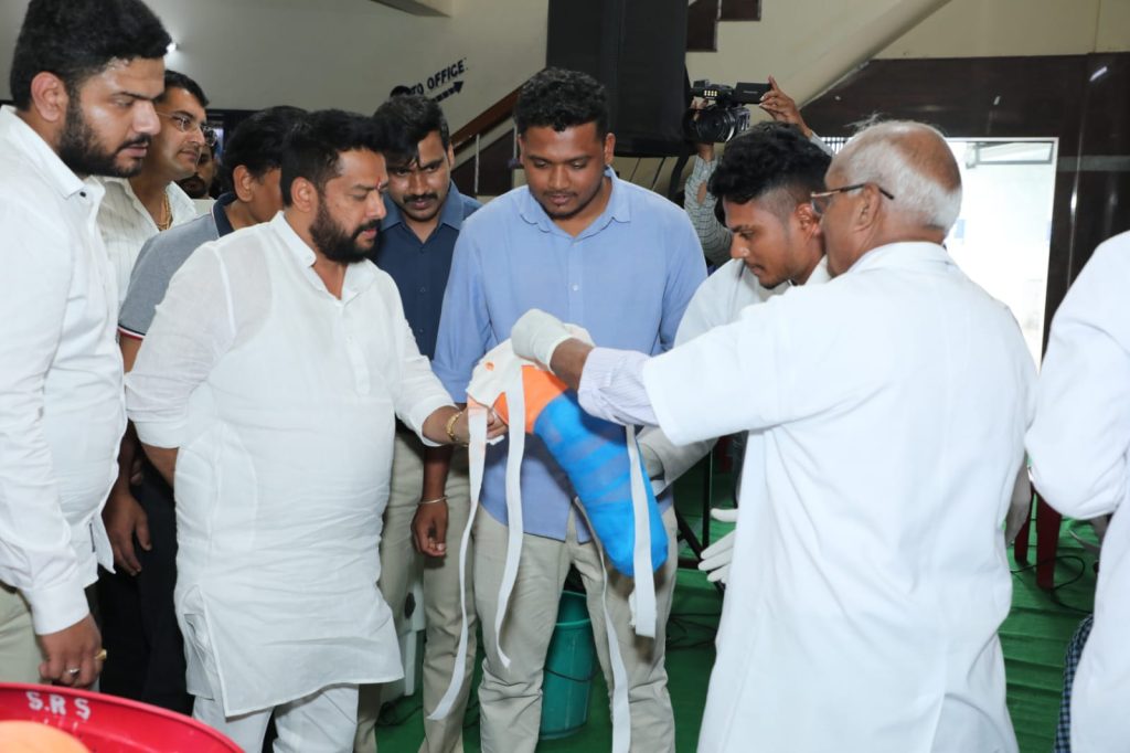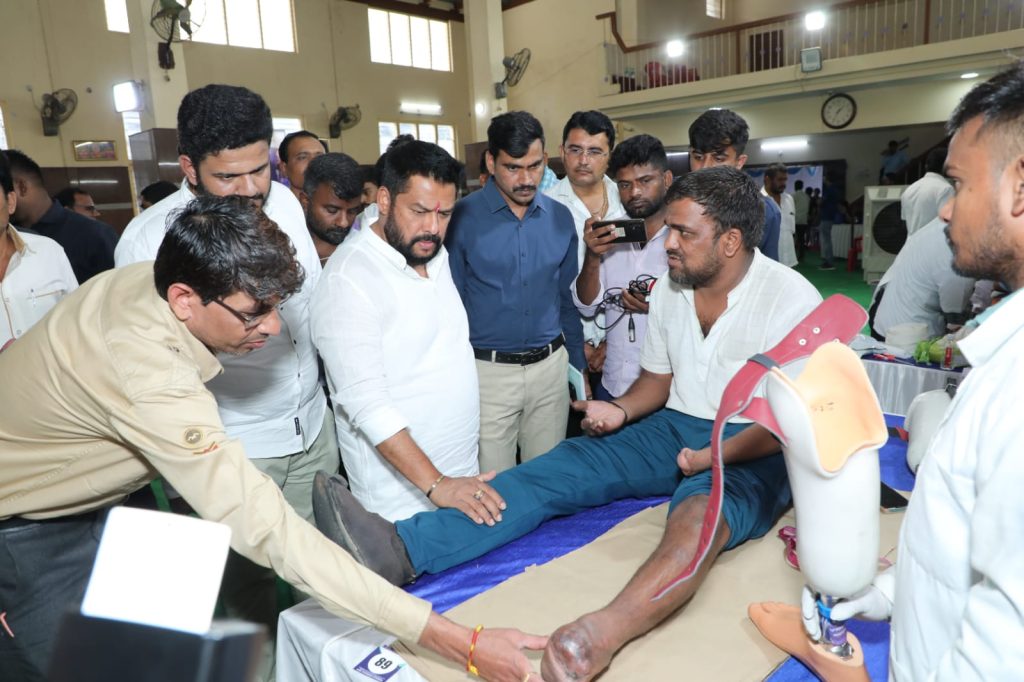 Bengaluru, July 17: Minister of Youth, Sports and Tribal Welfare B Nagendra inaugurated the drive to obtain artificial limb measurements for physically abled people as per their disability to provide their required support for the disability on Sunday. Measurements were taken for patients who had come from different states like Karnataka, Maharashtra, Tamil Nadu, Telangana, Kerala and Andhra Pradesh at a camp organised at Arasoji Rao Kalyana Mantapa, VV pura, Bangalore.