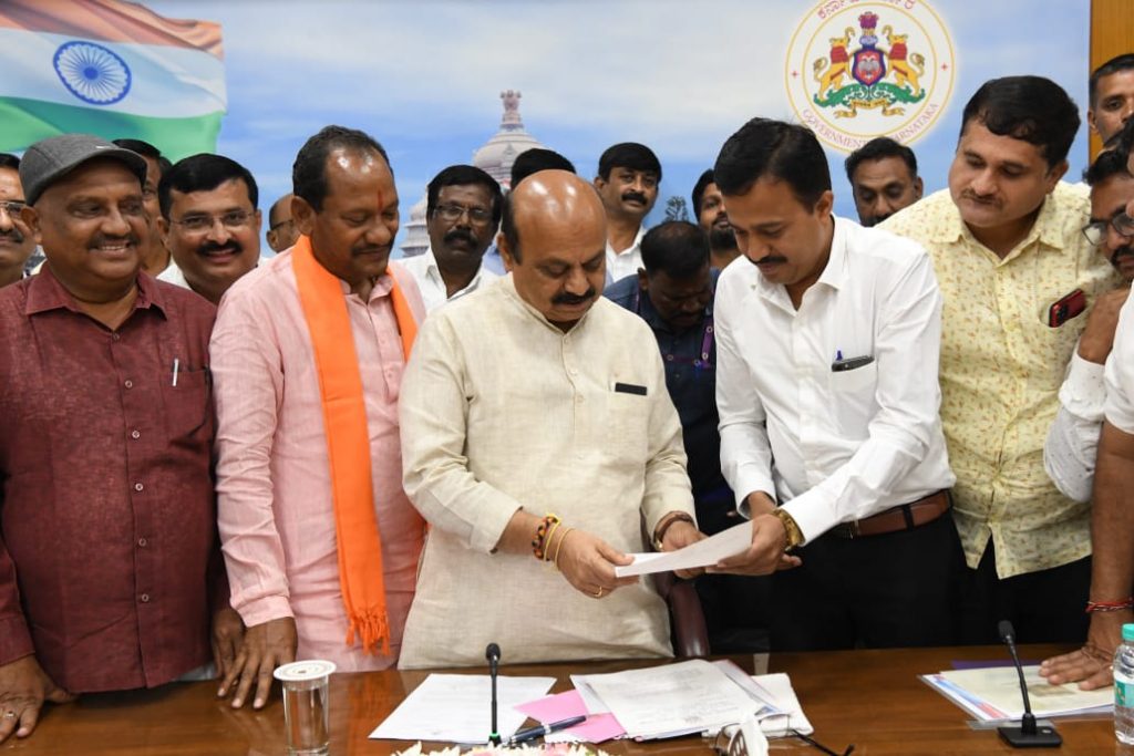 Bengaluru, Oct.14: A delegation of Karnataka State Government Employees Association led by President C.S.Shadakshari met Chief Minister Basavaraj Bommai and handed over letter of consent to contribute for ‘Punyakoti’ adoption scheme started by the government to take care of the cows.