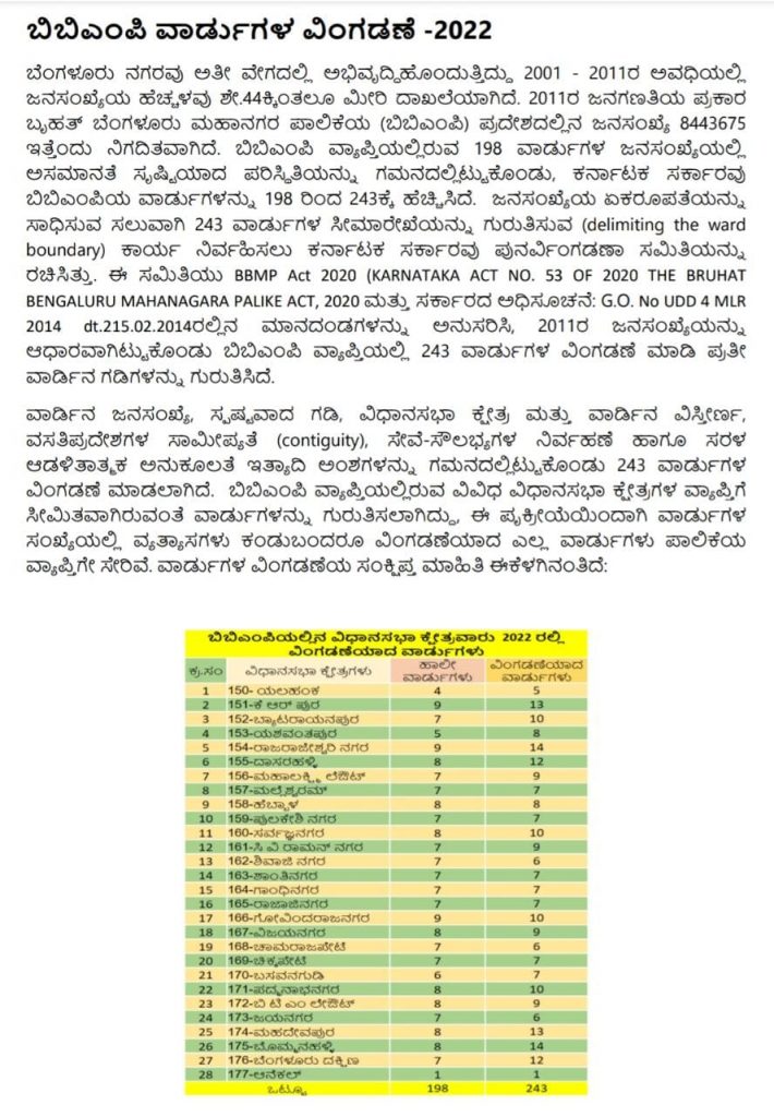 7 of the Bruhat Bengaluru Mahanagara Palike Act, 2020, and based on 2011 population census.