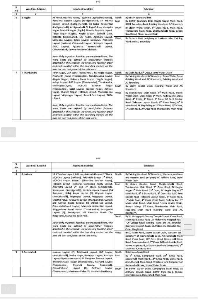 Modi Nagar, Deenadayal ward, Chanakya, Vijayanagara Krishnadevaraya ward, Veera Sindhoora Lakshmana ward are some of the interesting new wards added.