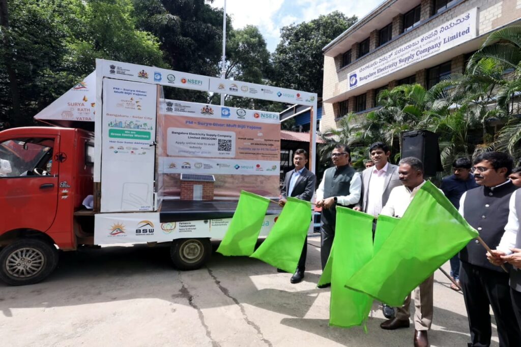 bengaluru, June 9: The Karnataka government, in strong partnership with the Ministry of New Renewable Energy, flagged the Surya-Rath Yatra at the BESCOM Corporate office to popularise PM-Surya Ghar: Mufti Bijli Yojana and solarise one crore households in the country. The flag-off was in the presence of Dinesh Dayanand Jagdale, Joint Secretary, Ministry of New and Renewable Energy, Additional Chief Secretary (Energy Department), Govt of Karnataka, Gaurav Gupta, Mahantesh Bilagi, Managing Director, BESCOM, K.P Ruddrappiah MD KREDL, Darshan, BESCOM Director (Finance) and other department officials, demonstrating the government’s strong commitment to renewable energy and reassuring the audience of its confidence in the scheme.