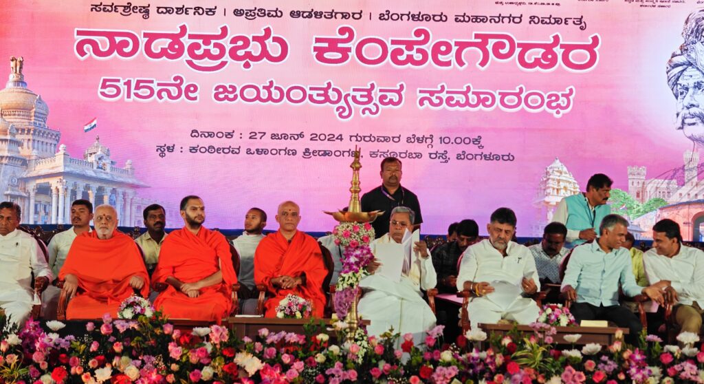 Speaking at the 515th Jayanthi of Kempe Gowda at the Kanteerava stadium, he said, “It is all our responsibility to nurture and grow the legacy of Nadaprabhu Kempe Gowda. He took care of all segments of people when he ruled Bengaluru. It is only appropriate that representatives of all communities participate in these celebrations.”