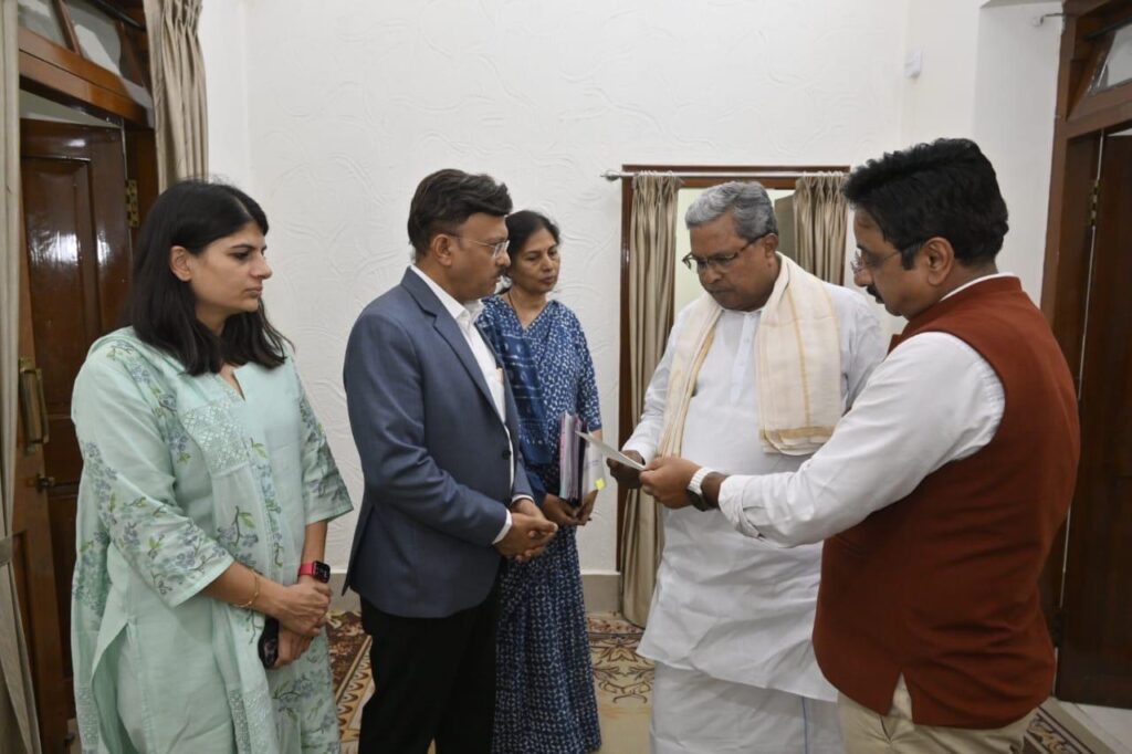 A delegation comprising Gaurav Gupta, IAS, Additional Chief Secretary, Energy Dept, Water Resources, Pankaj Kumar Pandey, IAS, Managing Director, KPTCL, Khushboo Goel Chowdhary IAS, MD KSSIDC and Cauvery B.B., IAS, Secretary to Government, today met the Hon’ble Chief Minister Siddaramaiah and submitted a letter of condemnation on behalf of the IAS Officers’ Association.