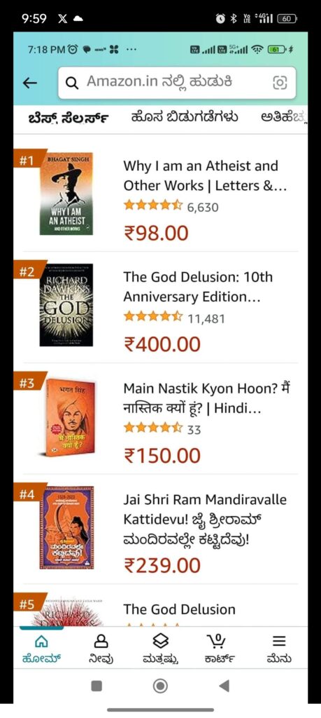 Amazon Books Best Sellers Top 100 books (spiritual section). The book is priced Rs. 239.