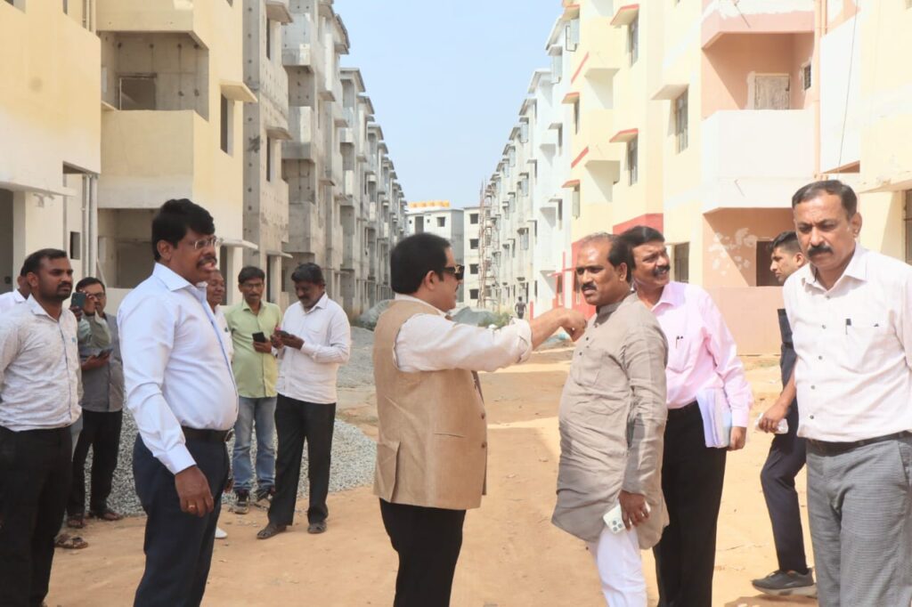 Minister Zameer Ahmed Khan inspects the housing complex works