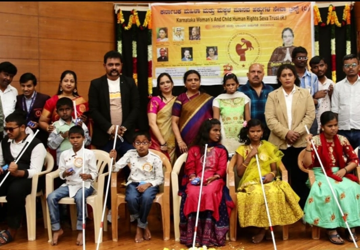Aides like walking sticks and user-friendly watches to visually challenged children were issued. Poshaka seva kala ratna award to senior supporting role artists and mahila madhyama seva ratna awards to women journalists were issued on the occasion.