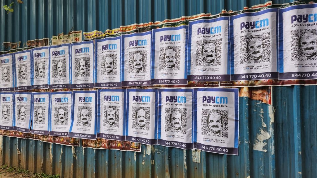 Earlier this week, posters resembling the design of e-wallet Paytm, and carrying the image of Mr Bommai on the QR code with the message “40% accepted here” went viral in the city.