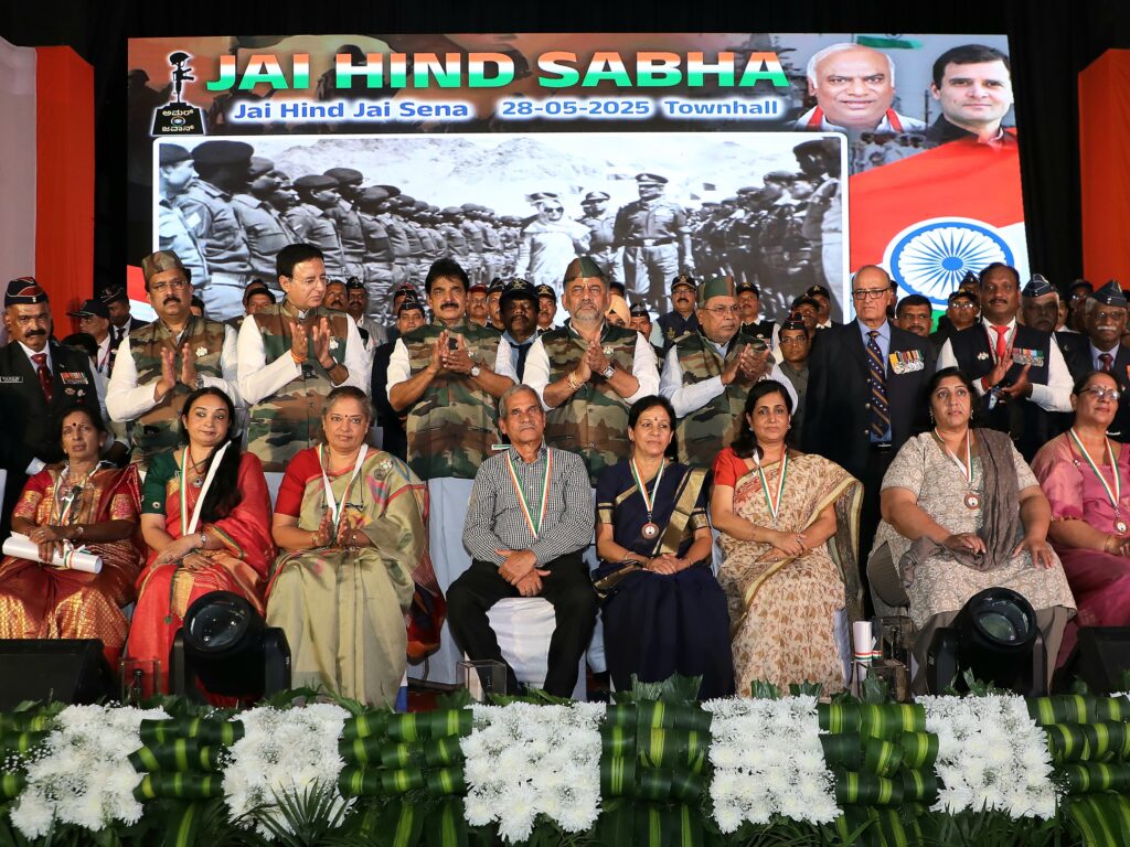 The Karnataka Pradesh Congress Committee had organised the Jai Hind Sabha as per the directions of the All India Congress Committee. More than a thousand defence personnel including senior officials, ex servicemen and families of martyrs attended the function.