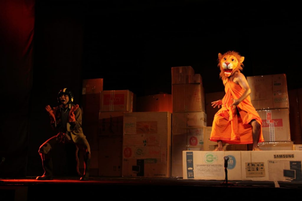 ‘Damanna’, the protagonist of the play, a simply Tea stall owner, living happily in his village with his family, enjoying the cultural and religious harmony, was allured by a visa agent with a high salary to go to a country called Kendonia. Only after reaching the strange land, he realizes that he is duped, and he can’t come back. Once in an unknown land, of no return, he had no choice but to work like a monkey in a Circus Company. The events that turn out there, the people he meets, make him realize the irony of this developmental world.