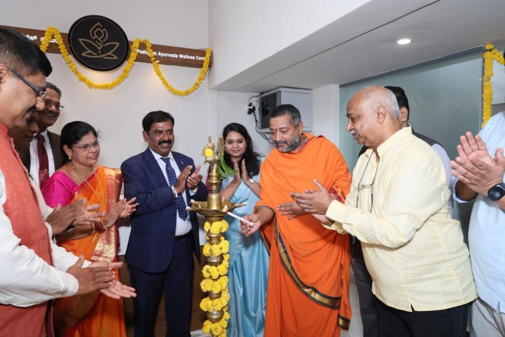 His Holiness Shri Vishwa Santosha Bharathi Swamiji of Ayurashrama, along with Nagaratna Ramamurthy, former Corporator, inaugurated the Pushpam Ayurveda Wellness Centre at JP Nagar. This establishment, a unit of Swamy Pushpam Ayurveda Wellness Pvt Ltd, is strategically located on 9th cross road, opposite the Tirumalagiri temple, in a prime area.