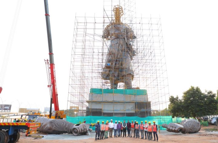 Bengaluru, May 2: The sword which will be a part of the 108 ft Nadaprabhu...