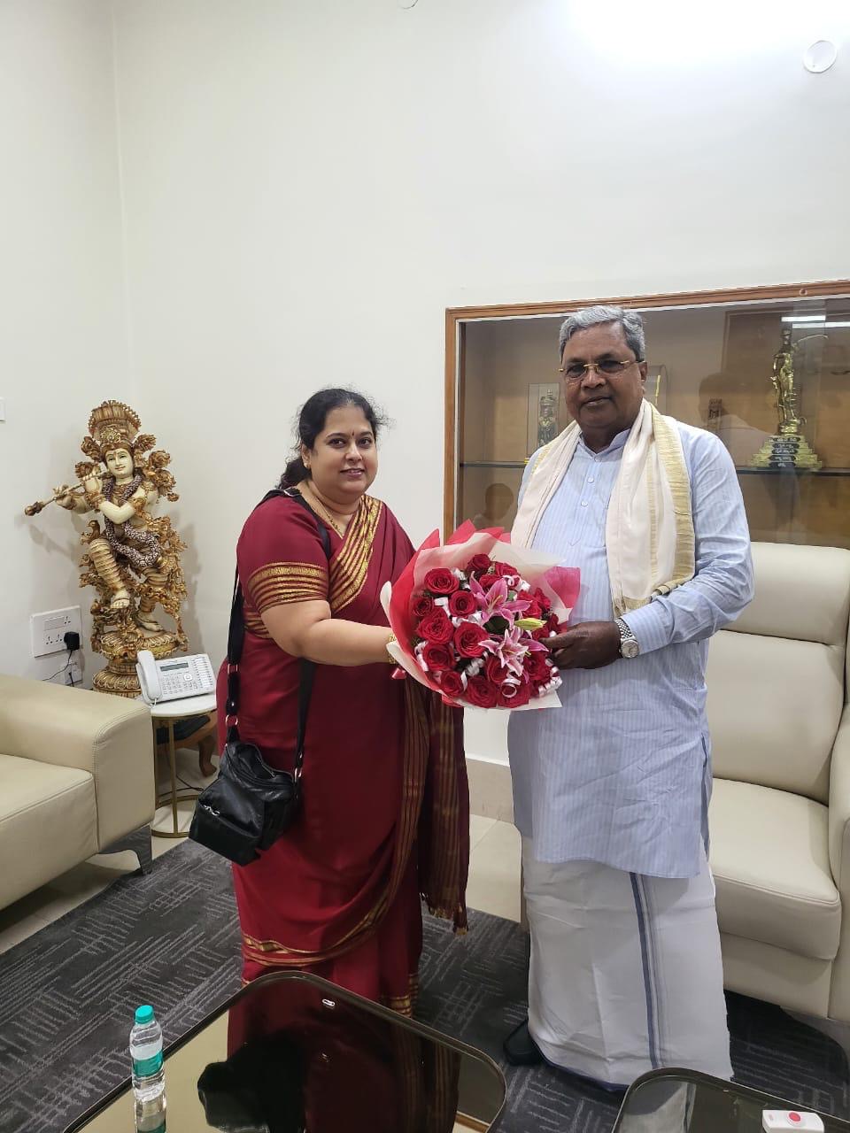 Sumana Girish, the current president of Kannada Balaga in the United Kingdom, met the Chief Minister and extended a special invitation for the Deepavali and Kannada Rajyotsava celebration, which will be attended by thousands of Kannadigas.