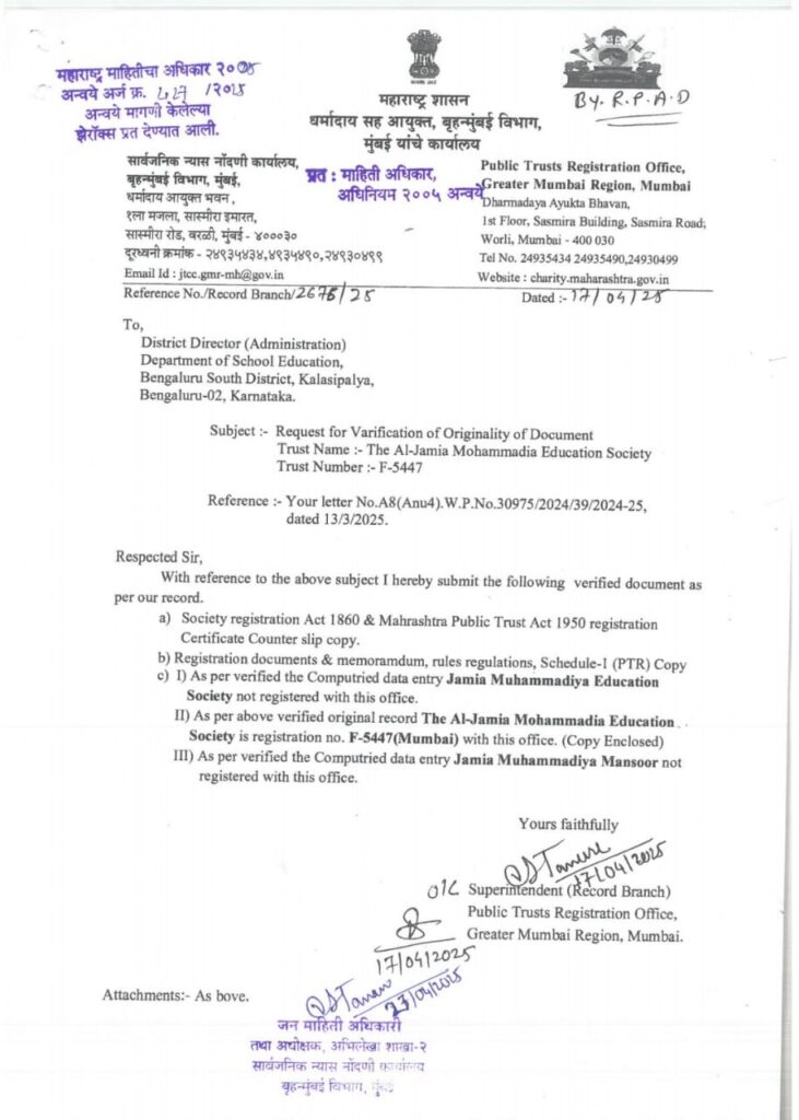 It is also cheating and deceiving various departments in the state by giving false information. This school is registered under the name of the governing body “Jamia Mohammadiya Mansoor”. He said that the details of the school management board have been submitted to the Education Department as “Jamia Mohammediyah Education Society of Mumbai”.