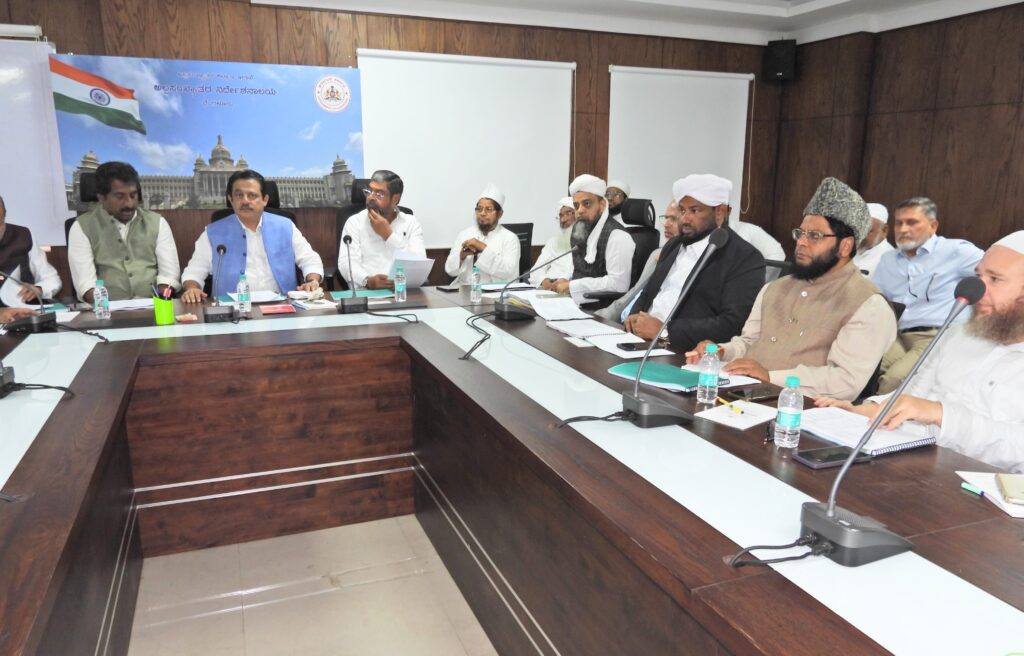 Minister Rahim Khan, Chief Minister’s Political Secretary Nasir Ahmed, MLAs Iqbal Hussain, Abdul Jabbar, Balkis Banu, Wakf Board President Anwar Basha, Maulana Maqsood Imran, Maulana Tanveer Hashmi, Maulana Shafi Sadi, and several other key figures were present at the meeting.